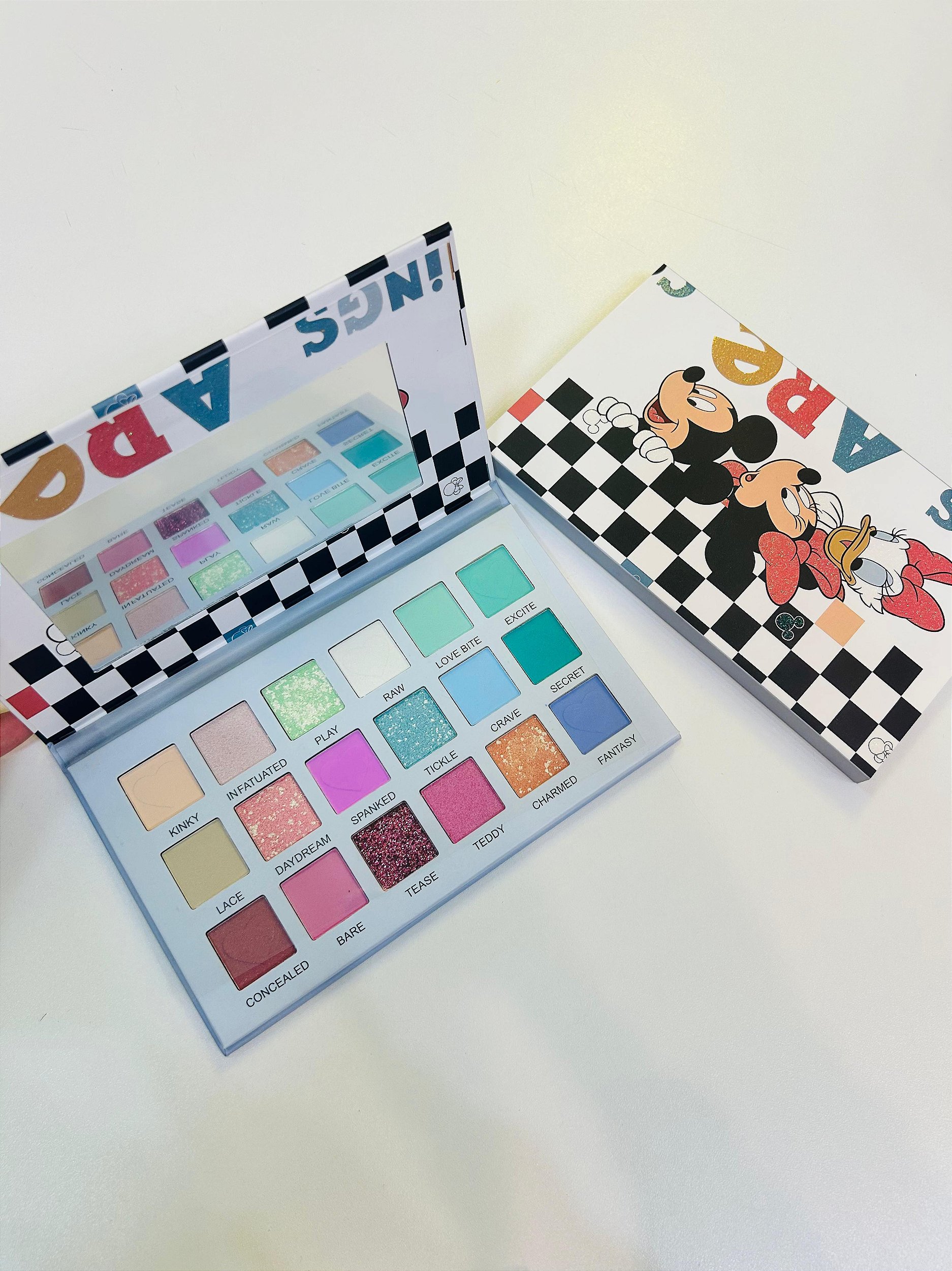 Celebre o universo Disney com a Paleta de Maquiagem Mickey Mouse! Combinando praticidade e charme, essa paleta possui cores intensas, textura aveludada e alta fixação. Embalagem compacta com espelho, ideal para o dia a dia ou ocasiões especiais. Uma opção irresistível para os apaixonados por maquiagem e personagens clássicos.